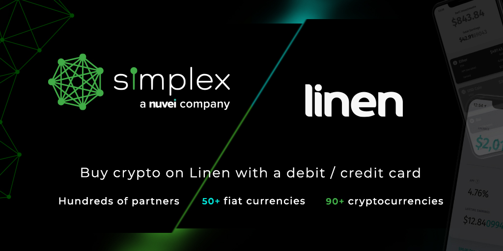 Simplex, the largest fiat infrastructure for digital currencies globally, and Linen, the self-custody crypto wallet, are joining forces to allow the Linen community to instantly acquire Ether, stablecoins, and other crypto assets using cards as a payment method.  Simplex is the provider underpinning many fiat onramps on leading exchanges such as Binance, Huobi, and BitPay.